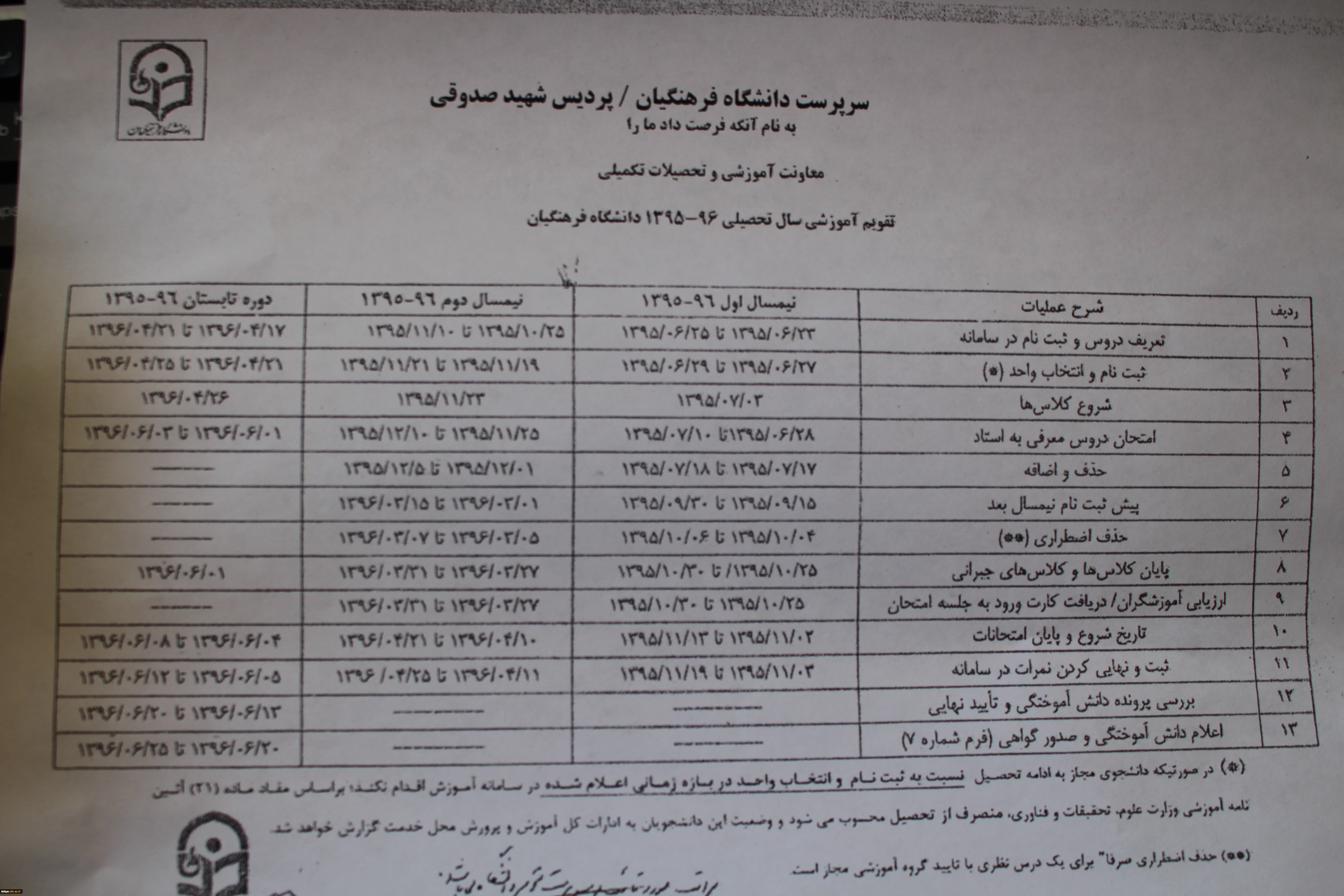 تقویم آموزشی نیمسال 96-95 و زمان انتخاب واحد 2