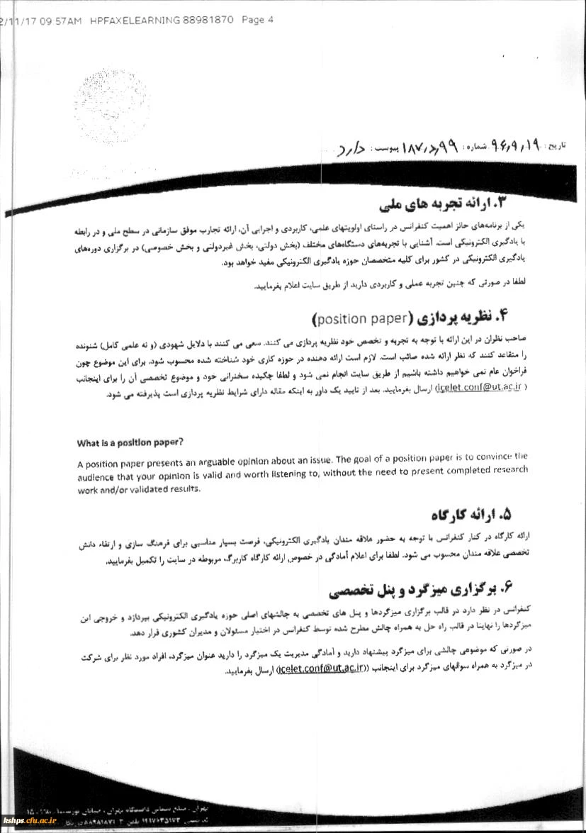 فراخوان دوازدهمین دوره کنفرانس یادگیری الکترونیکی جهت اعضای هیات علمی و مدرسان پردیسها 5