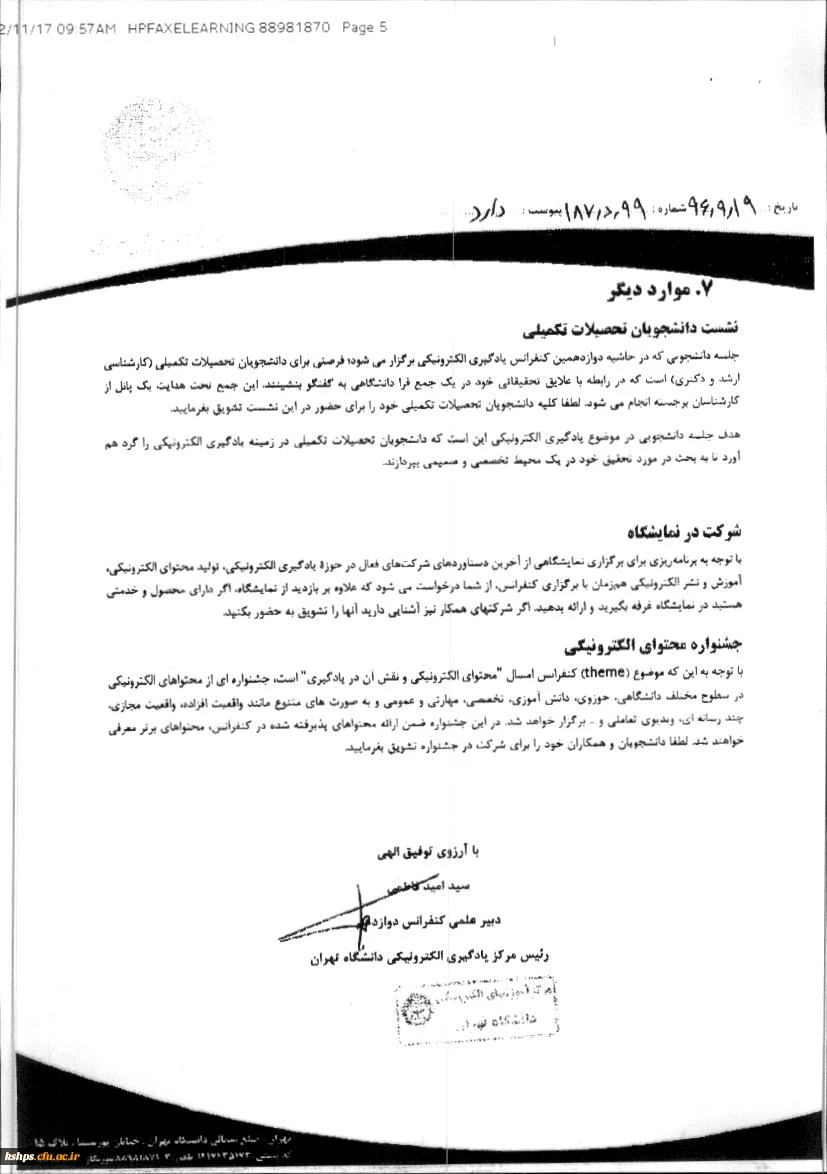 فراخوان دوازدهمین دوره کنفرانس یادگیری الکترونیکی جهت اعضای هیات علمی و مدرسان پردیسها 6
