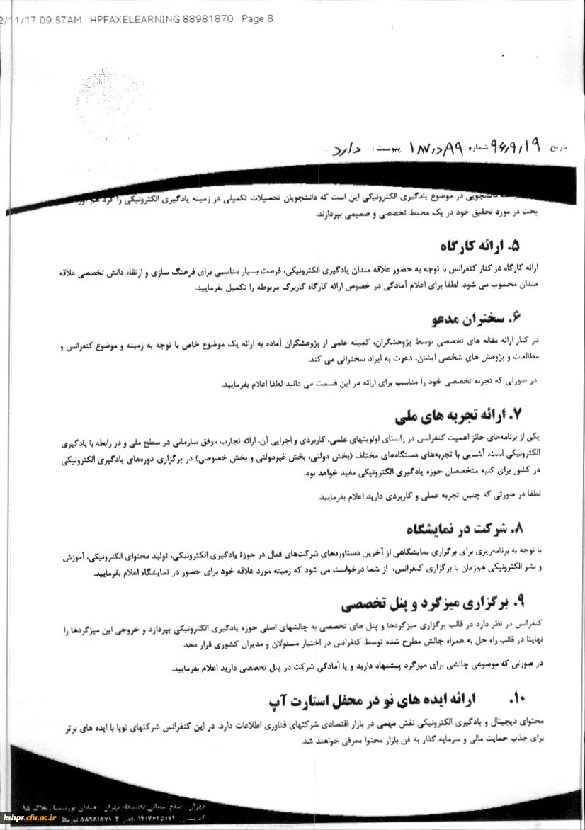 فراخوان دوازدهمین دوره کنفرانس یادگیری الکترونیکی جهت اعضای هیات علمی و مدرسان پردیسها 9