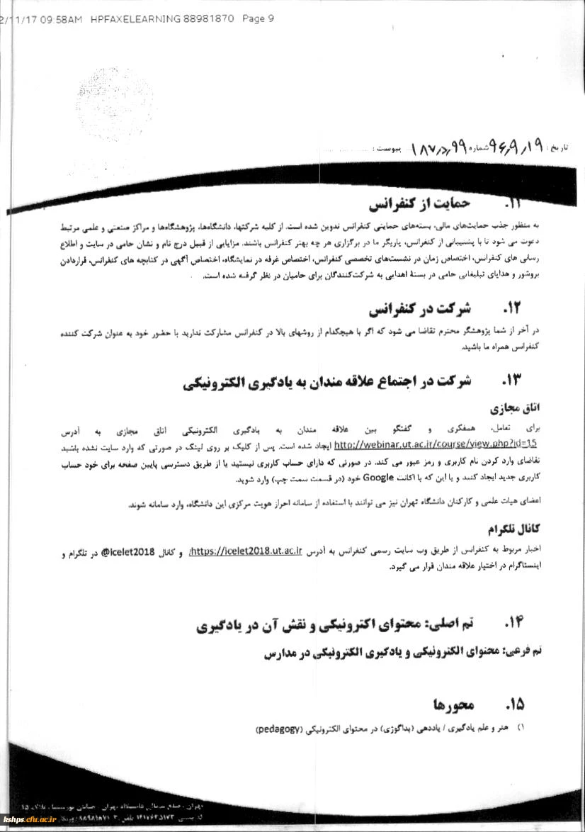 فراخوان دوازدهمین دوره کنفرانس یادگیری الکترونیکی جهت اعضای هیات علمی و مدرسان پردیسها 10