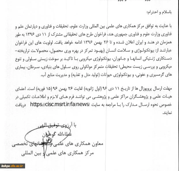 فراخوان طرح های تحقیقاتی مشترک بین مرکز همکاری های علمی وزارت علوم با مرکز علم و فناوری وزارت علوم کشور هند 2