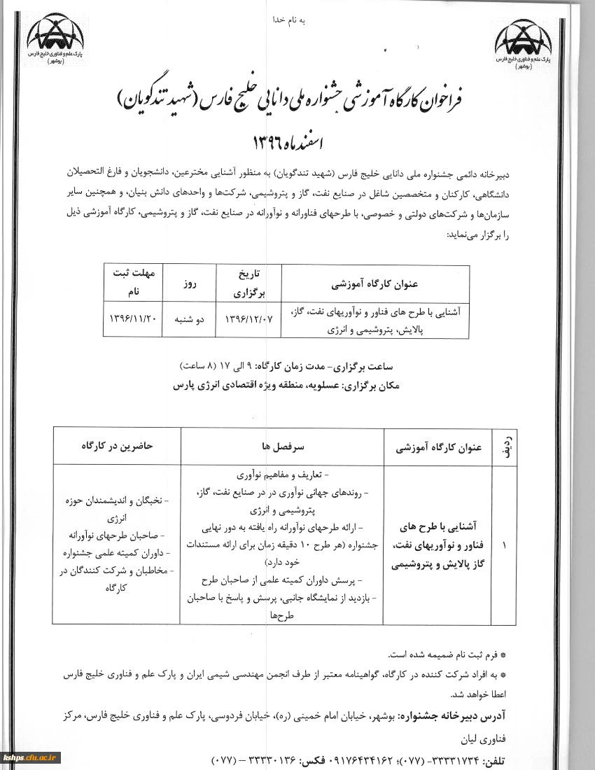 امتیاز دهید : کارگاه آموزشی با طرح های فناور و نوآوری های نفت و گاز و پالایش، پتروشیمی و انرژی 4 سهشنبه 17 بهمن 1396 ساعت 9:05