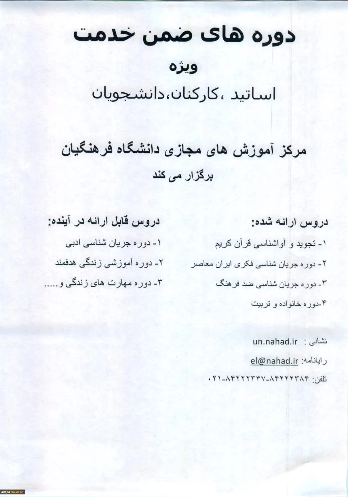 دوره ضمن خدمت ویژه اساتید ، کارکنان ،دانشجویان