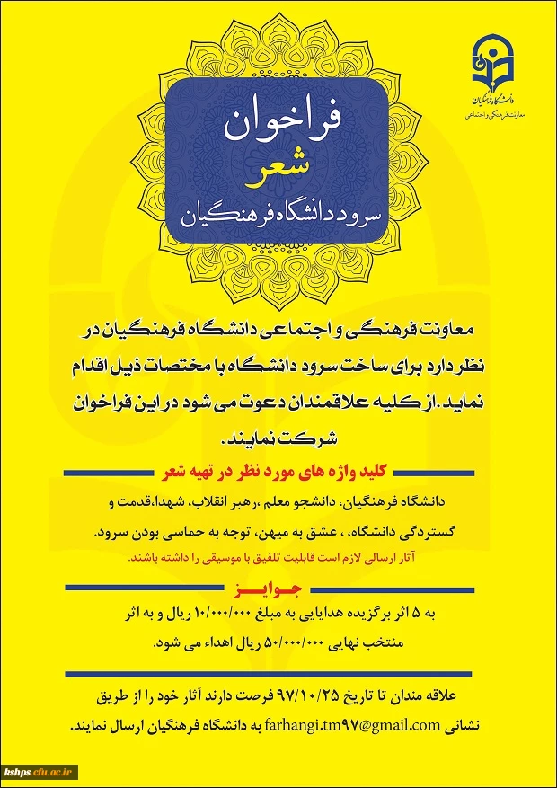 فراخوان شعر سرود رسمی دانشگاه فرهنگیان 2