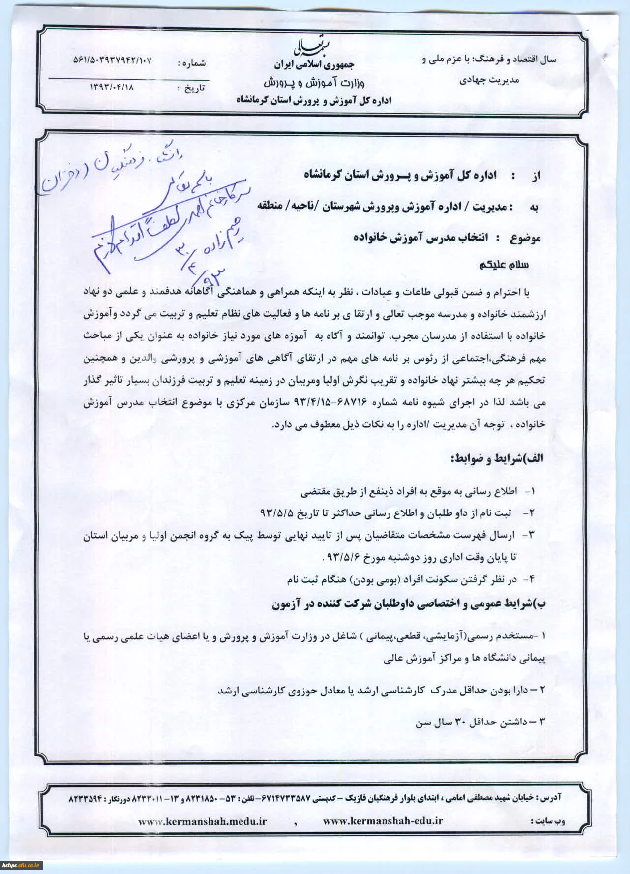 بخشنامه آموزش خانواده 1
