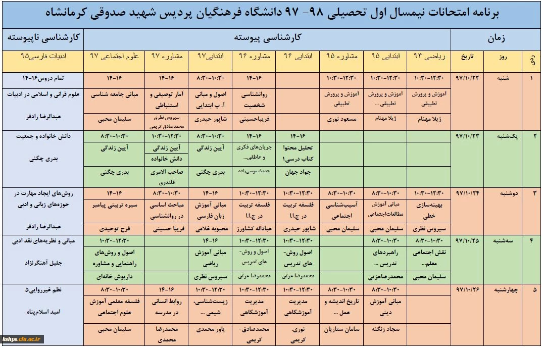 برنامه امتحانات پایان ترم 3
