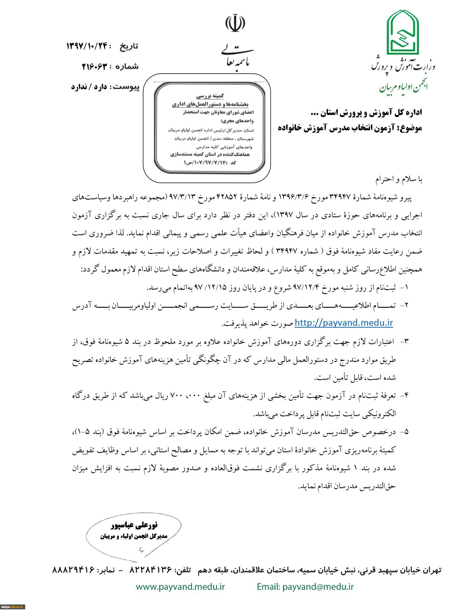 چگونگی و زمان برگزاری آزمون انتخاب مدرس آموزش خانواده" 2