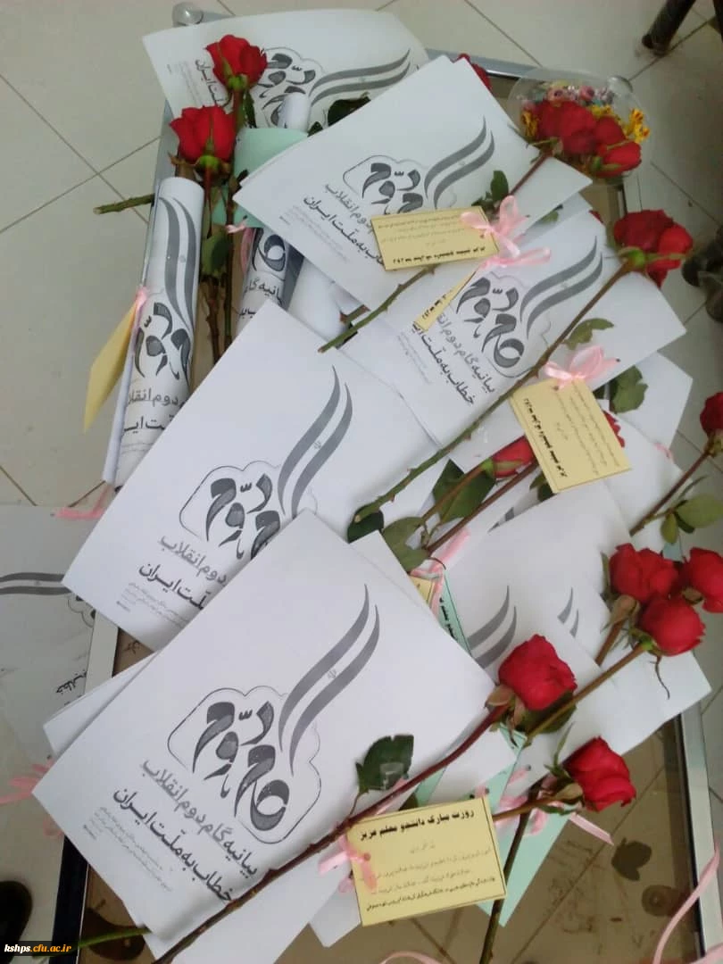 به همت نهاد نمایندگی مقام معظم رهبری در بین دانشجویان توزیع گل و بیانیه گام رهبر انقلاب صورت گرفت . 4