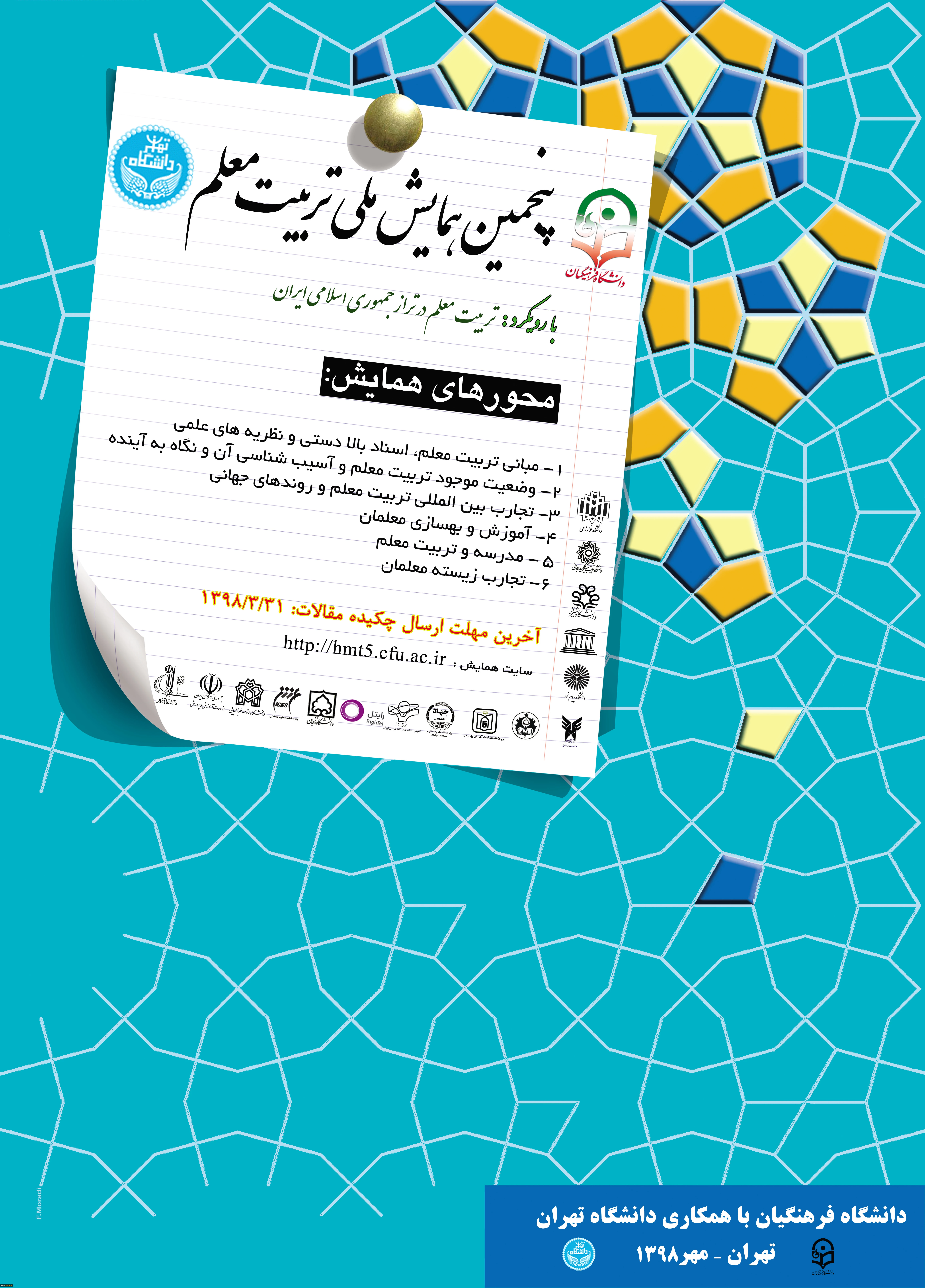 امتیاز دهید : پنجمین همایش ملی تربیت معلم را با همکاری دانشگاه تهران در مهرماه 1398 2 سهشنبه 31 اردیبهشت 1398 ساعت 10:07