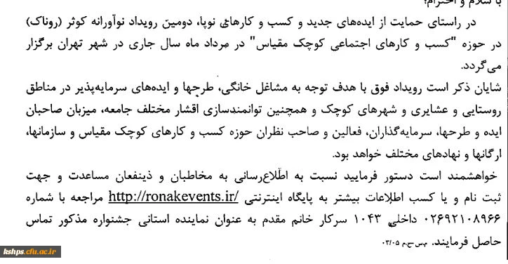 " فراخوان دومین رویداد نوآورانه کوثر( روناک) در حوزه کسب وکار های اجتماعی کوچک مقیاس " 2