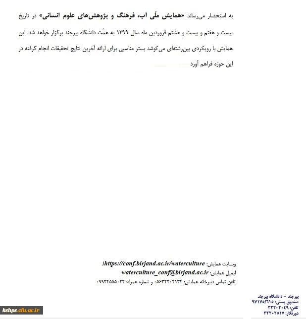 " برگزاری همایش ملی آب فرهنگ و پژوهش های علوم انسانی"، 2