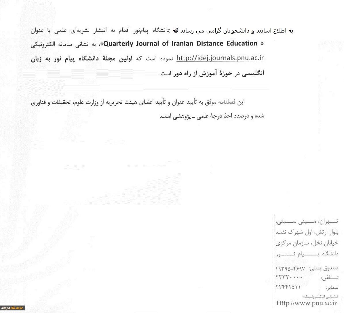 " اطلاع رسانی انتشار فصلنامه علمی «Quarterly Journal of Iranian Distance Education »" 2