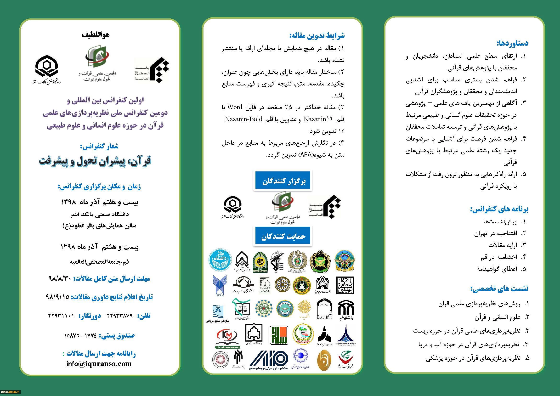 امتیاز دهید : " اولین کنفرانس بین المللی نظریه پردازی های علمی قرآن، در حوزه علوم انسانی و طبیعی" 2 چهارشنبه 27 شهریور 1398 ساعت 12:38