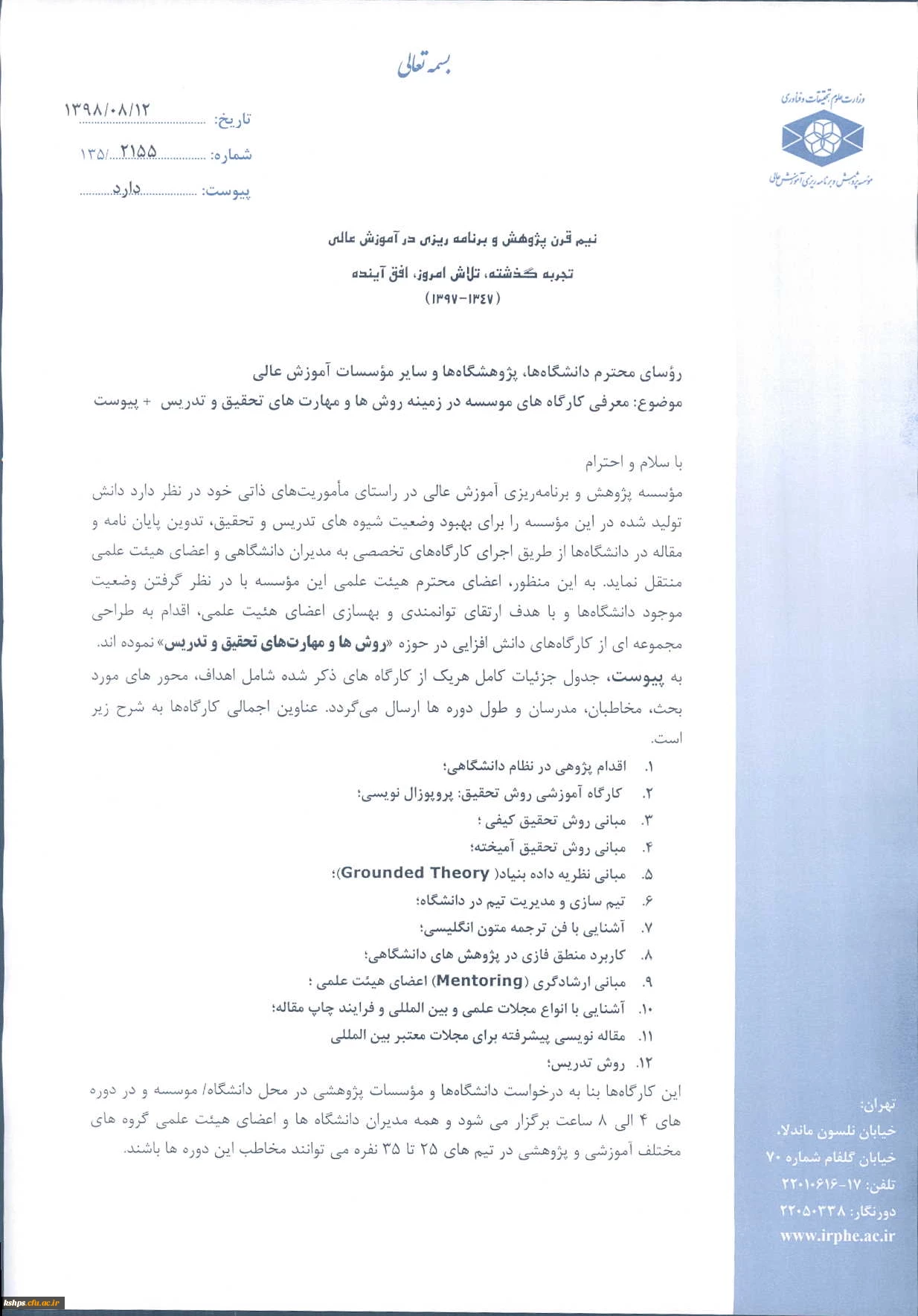 فراخوان معرفی کارگاه های موسسه پژوهش و برنامه ریزی آموزش عالی در زمینه روش ها و مهارت های تحقیق و تدریس 3