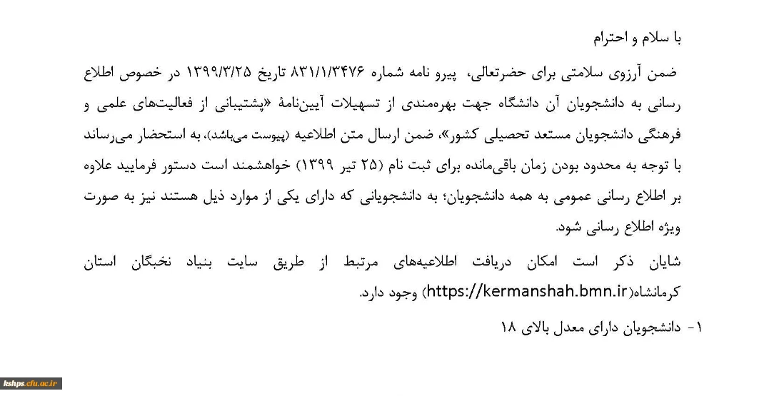 امتیاز دهید : پشتیبانی از فعالیت های علمی و فرهنگی دانشجویان مستعد تحصیلی کشور 2 دوشنبه 23 تیر 1399 ساعت 21:34