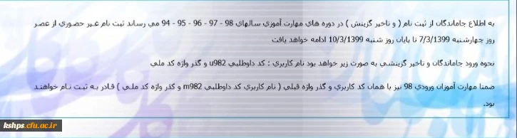 اطلاعیه ثبت نام جاماندگان (تاخیرگزینش) در دوره های مهارت آموزی سالهای 94 تا ۹۸  2
