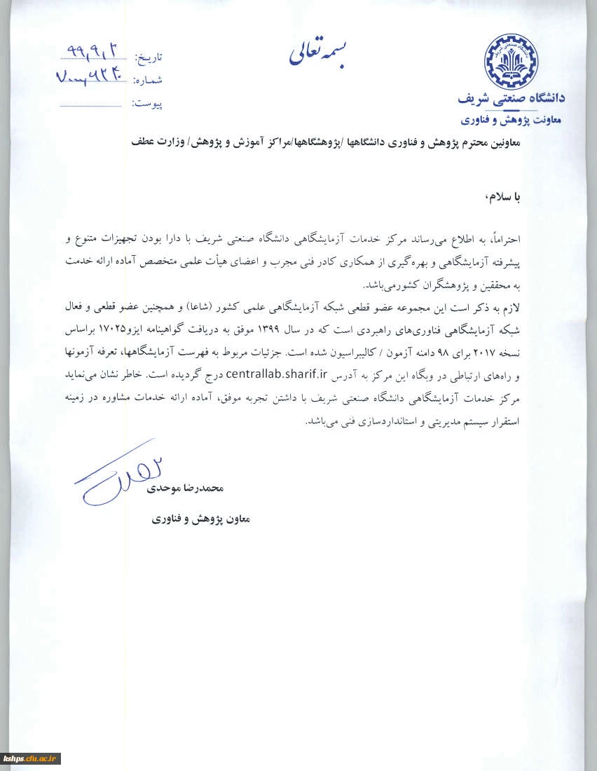 فراخوان آمادگی" مرکز خدمات آزمایشگاهی دانشگاه صنعتی شریف با دارا بودن تجهیزات متنوع و پیشرفته 2