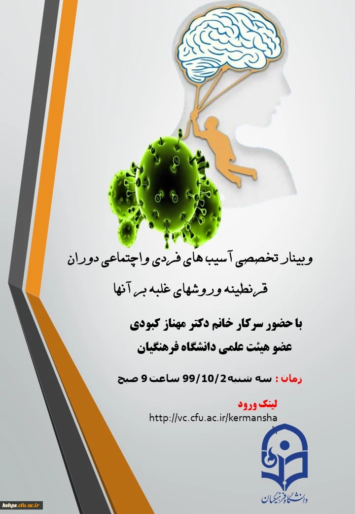 امتیاز دهید : وبینار تخصصی آسیب های فردی و اجتماعی دوران قرنطینه و روشهای غلبه بر آن 2 دوشنبه 1 دی 1399 ساعت 14:01