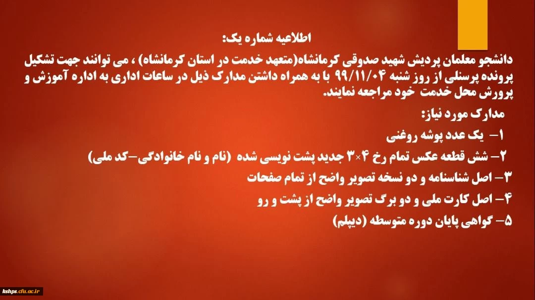 امتیاز دهید : قابل توجه پذیرفته شدگان ورودی 99 دانشگاه فرهنگیان ((تشکیل پرونده پرسنلی)) 2 سهشنبه 30 دی 1399 ساعت 14:03