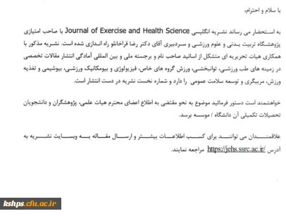 امتیاز دهید : فراخوان ارسال مقالات به نشریه انگلیسی پژوهشگاه تربیت بدنی وعلوم ورزشی 2 شنبه 4 بهمن 1399 ساعت 14:17
