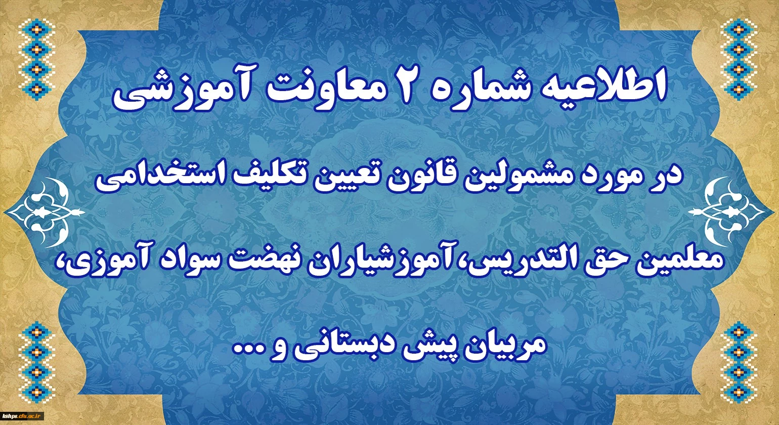 قابل توجه مهارت آموزان « مشمولین قانون تعیین تکلیف استخدامی معلمین حق التدریس،آموزشیاران نهضت سواد آموزی، مربیان پیش دبستانی و خرید خدمات آموزش معرفی شده از سوی ادارات کل آموزش و پرورش » 3