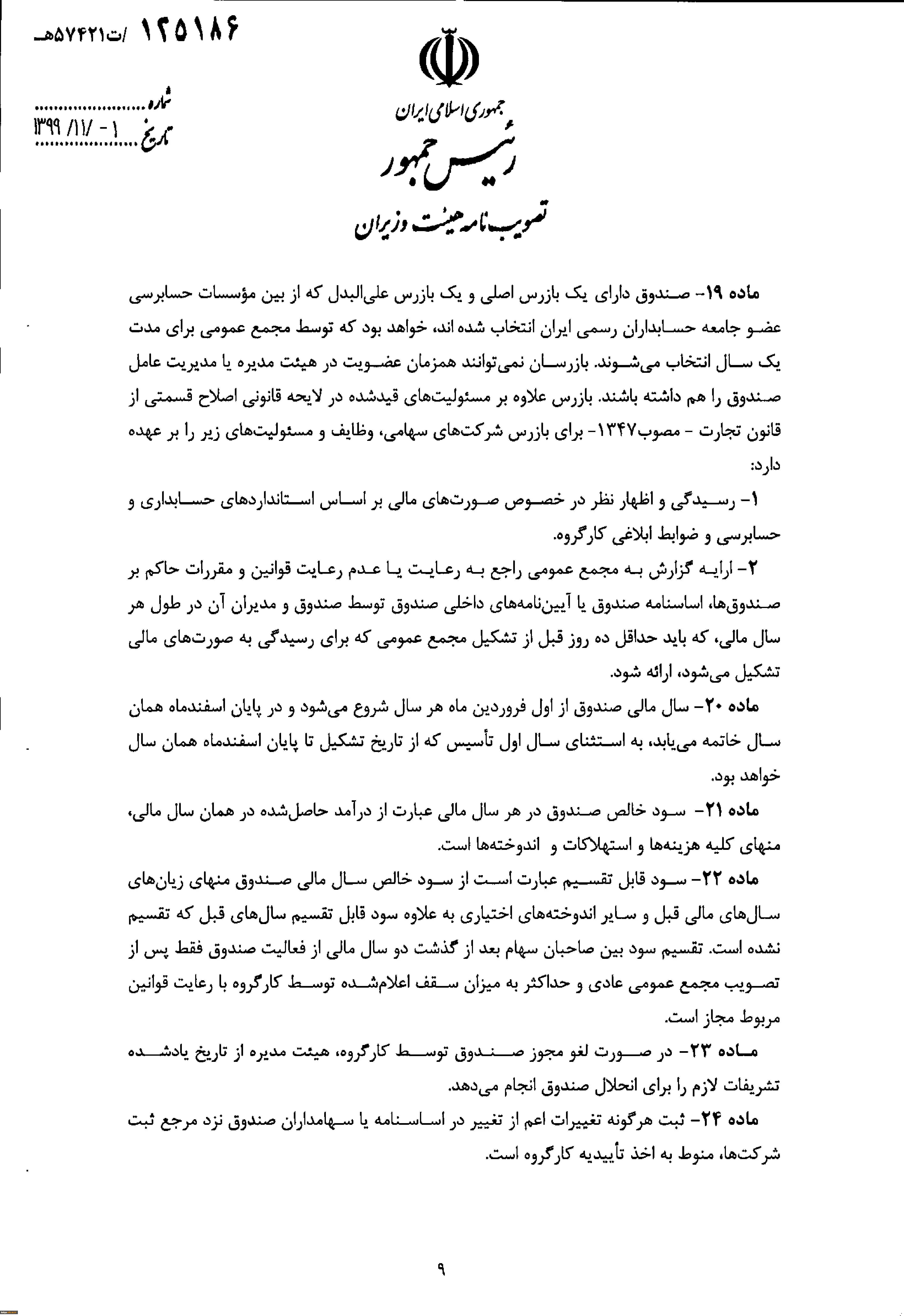 " تصویب نامه هیات وزیران درخصوص اساسنامه نمونه صندوق های پژوهش و فناوری غیردولتی"  6