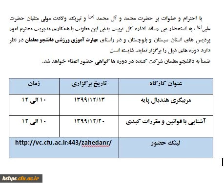 امتیاز دهید : برگزاری دوره های ورزشی در راستای مهارت آموزی ورزشی دانشجو معلمان با اهدای گواهی نامه 2 شنبه 9 اسفند 1399 ساعت 10:12