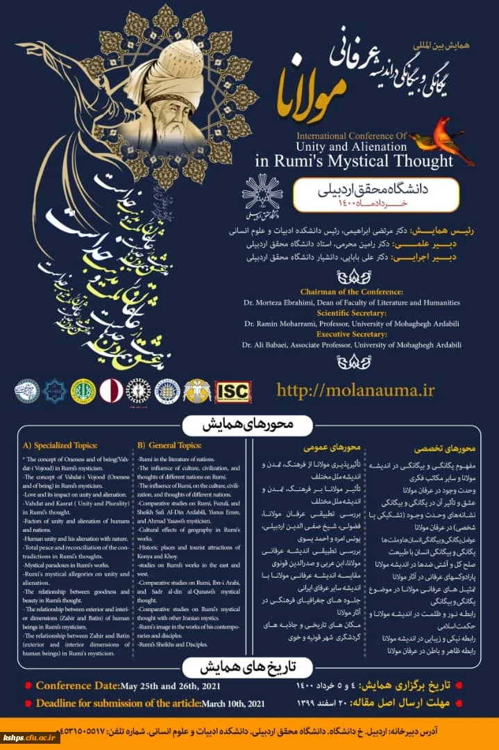 فراخوان مقاله " چهارمین همایش بین المللی مولانا (یگانگی و بیگانگی در اندیشه عرفان مولانا)"، 2