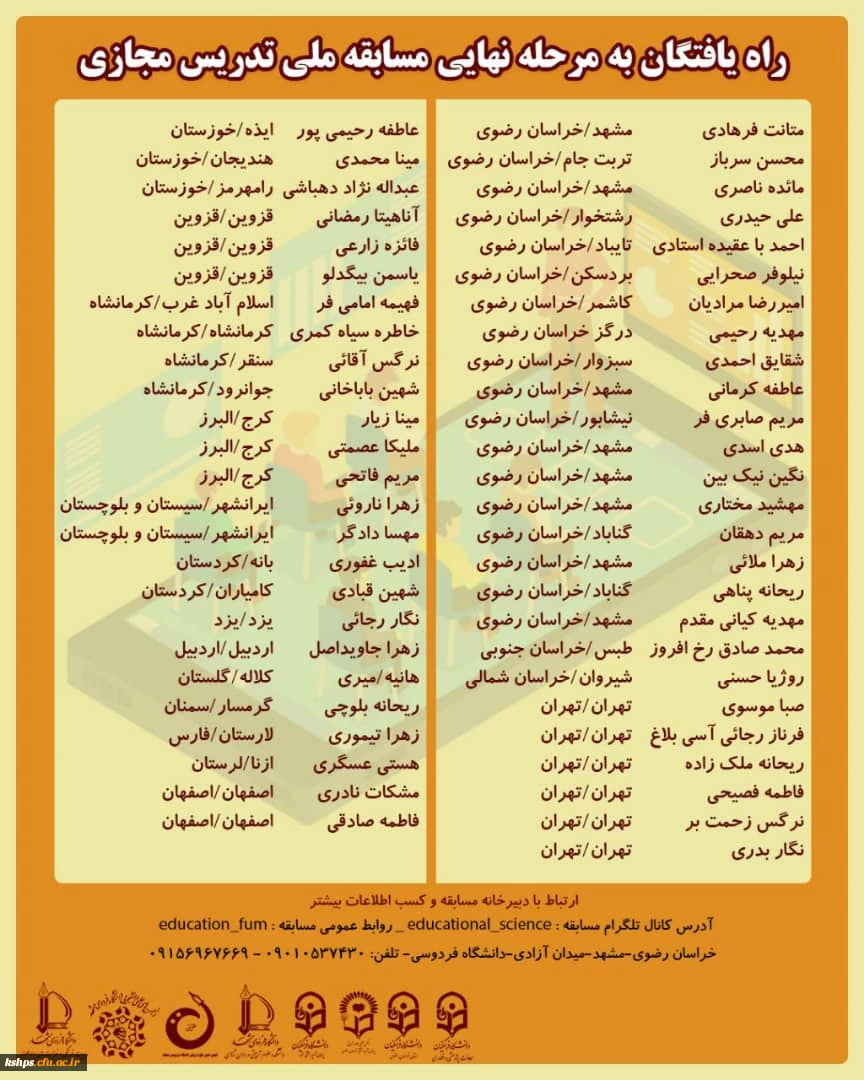 اسامی راه یافتگان به مرحله ملی مسابقه تدریس مجازی 2