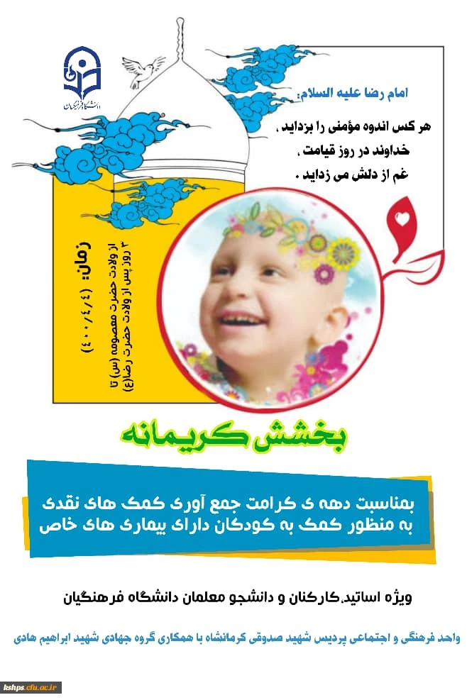 طرح بخشش کریمانه جمع آوری کمک های کریمانه جهت کمک به کودکان دارای بیماریهای خاص در دهه کرامت 2