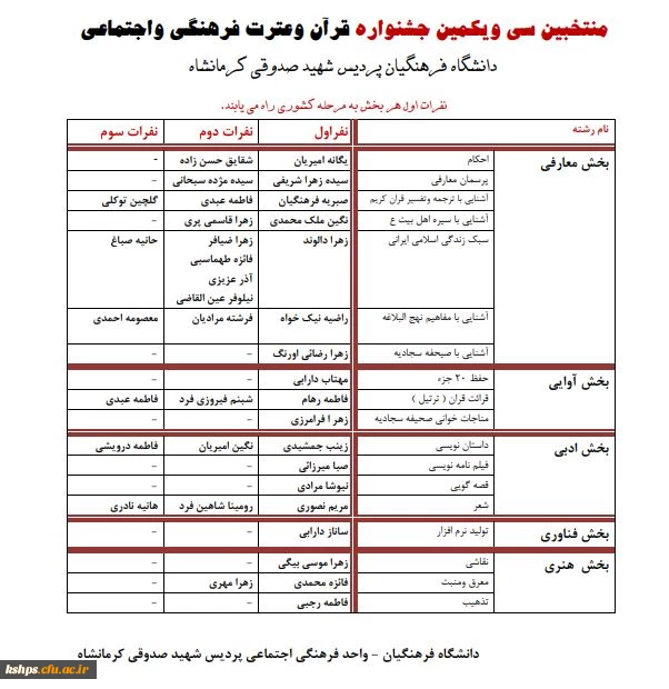 نتایج جشنواره سی و یکم قرآن و عترت دانشگاه فرهنگیان _ پردیس شهید صدوقی 2