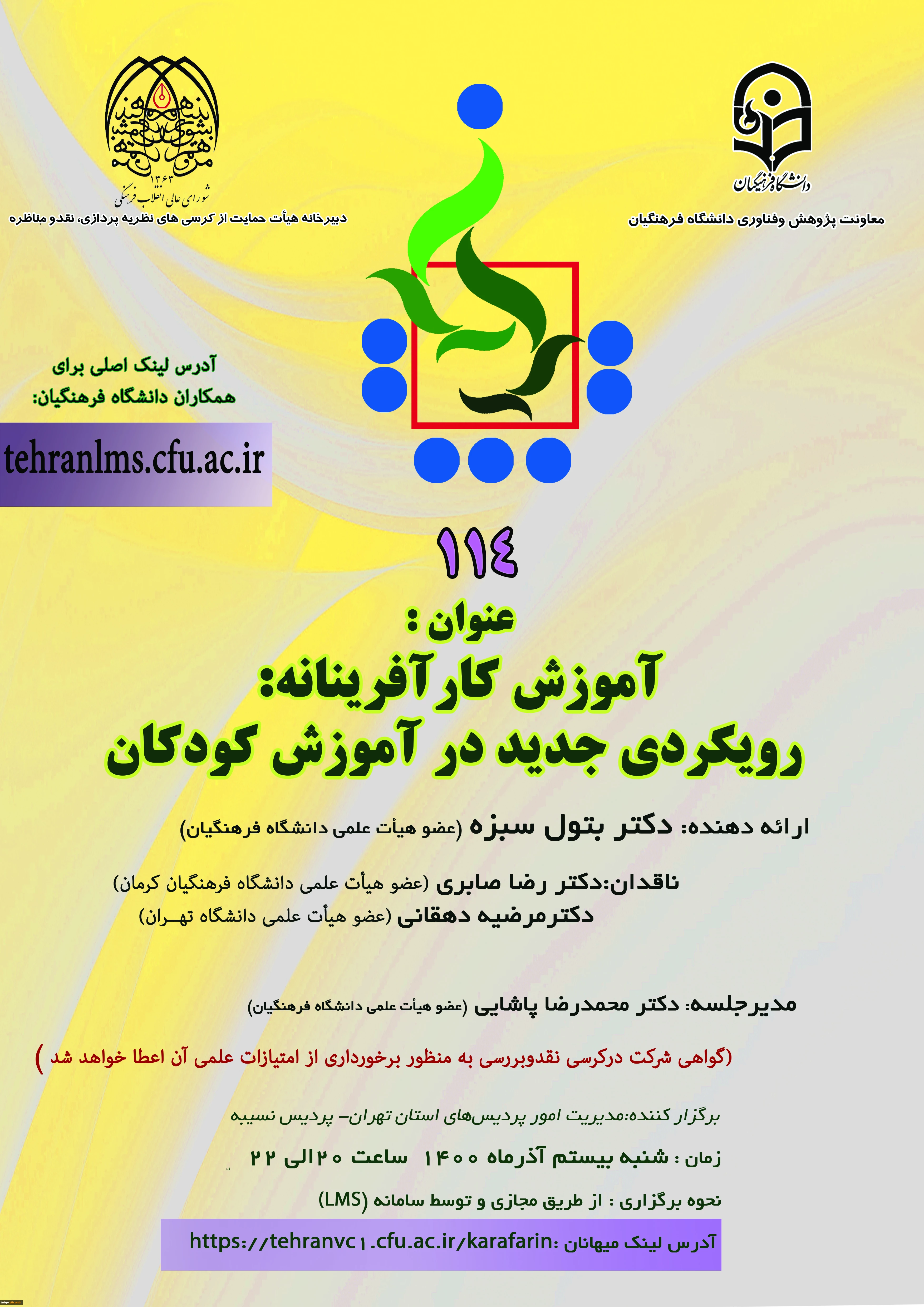 صد و چهاردهمین کرسی ترویجی با عنوان : «آموزش کارآفرینانه: رویکردی جدید در آموزش کودکان» 2