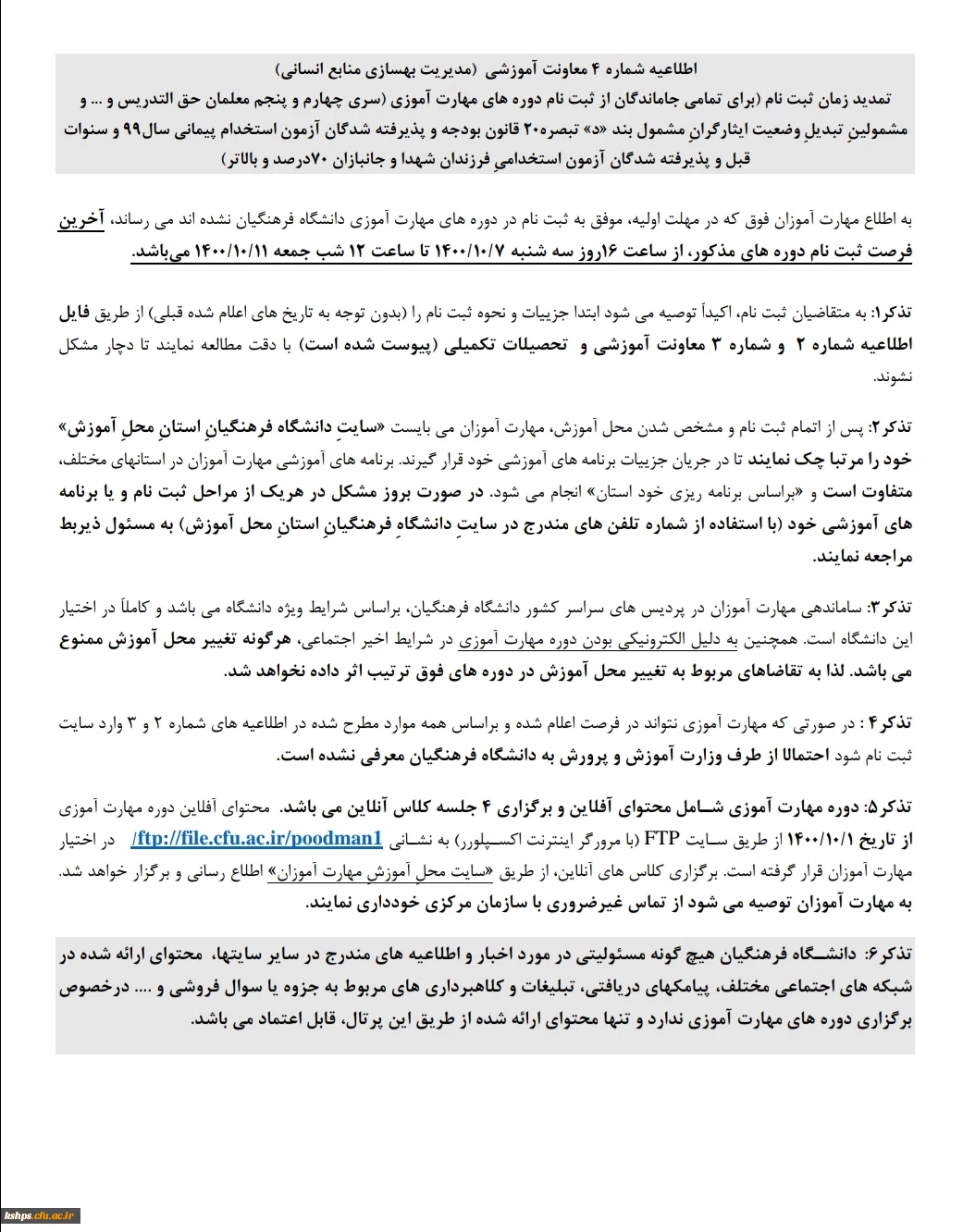 امتیاز دهید : تمدید زمان ثبت نام برای تمام جاماندگان از ثبت نام دورهای مهارت آموزی 2 سهشنبه 7 دی 1400 ساعت 15:58
