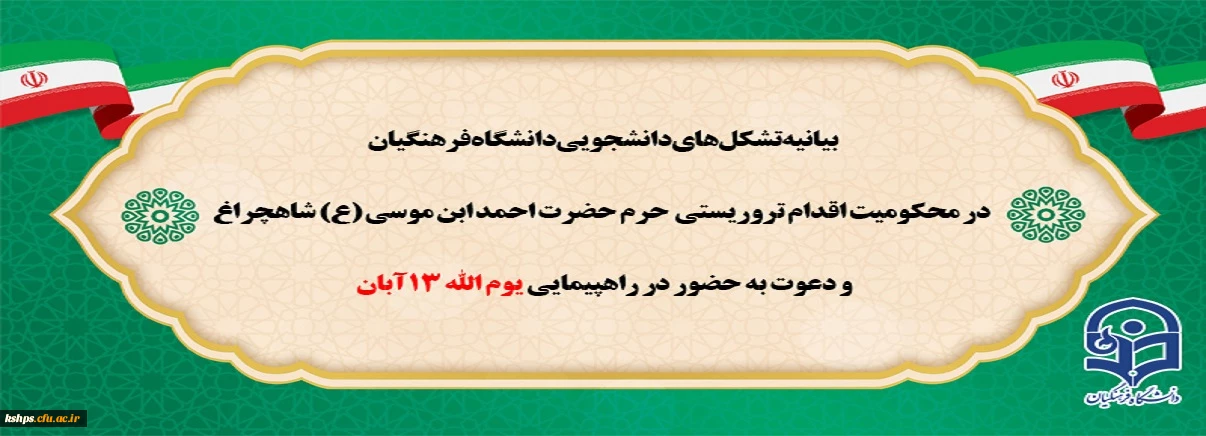 بیانیه تشکل های دانشجویی دانشگاه فرهنگیان در محکومیت اقدام تروریستی حرم حضرت احمد ابن موسی(ع) و دعوت به حضور در راهپیمایی یوم الله 13 آبان 2