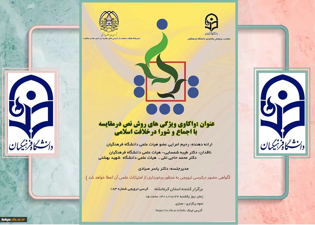 کرسی یکصد و هشتاد و سوم با عنوان واکاوی ویژگی های روش نص در مقایسه با اجماع و شورا در خلافت اسلامی 2