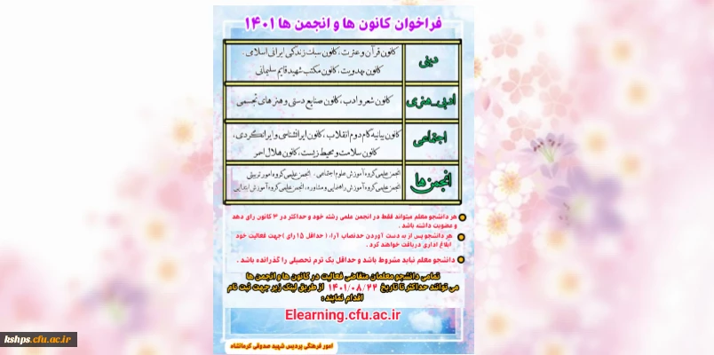 ثبت نام کانون های فرهنگی و انجمن های علمی دانشجویی 2