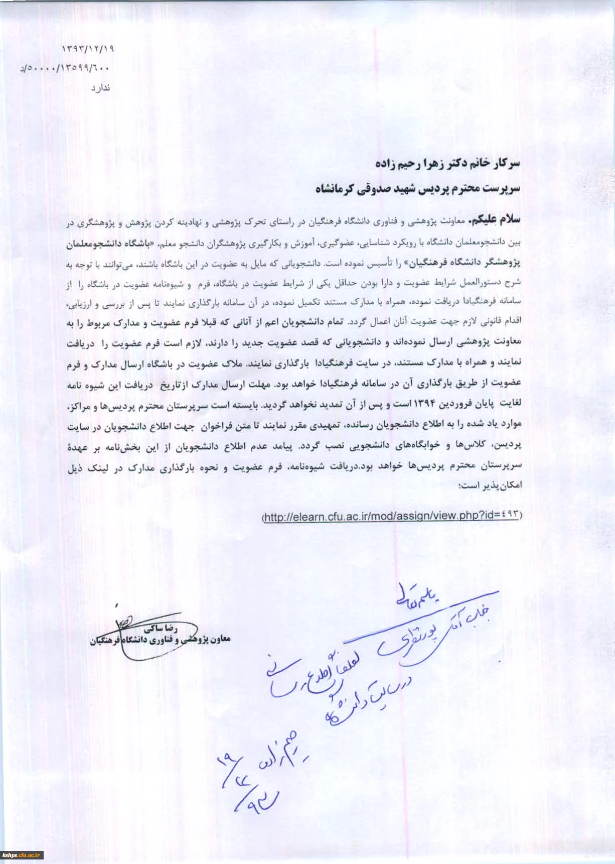 امتیاز دهید : قابل توجه دانشجویان گرامی عضویت در باشگاه دانشجومعلمان پژوهشگر دانشگاه فرهنگیان 2 سهشنبه 19 اسفند 1393 ساعت 11:18