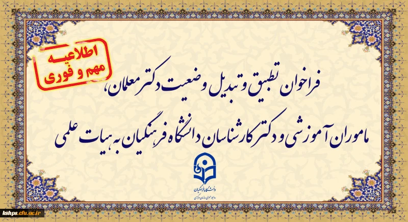 فراخوان دستورالعمل تطبیق و تبدیل وضعیت دکترمعلمان، ماموران آموزشی و دکترکارشناسان دانشگاه فرهنگیان به هیات علمی 2