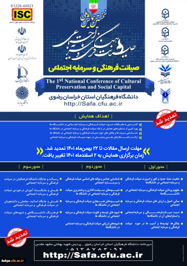 نخستین همایش ملی صیانت فرهنگی و سرمایه اجتماعی به میزبانی دانشگاه فرهنگیان استان خراسان رضوی در دوم اسفندماه 2