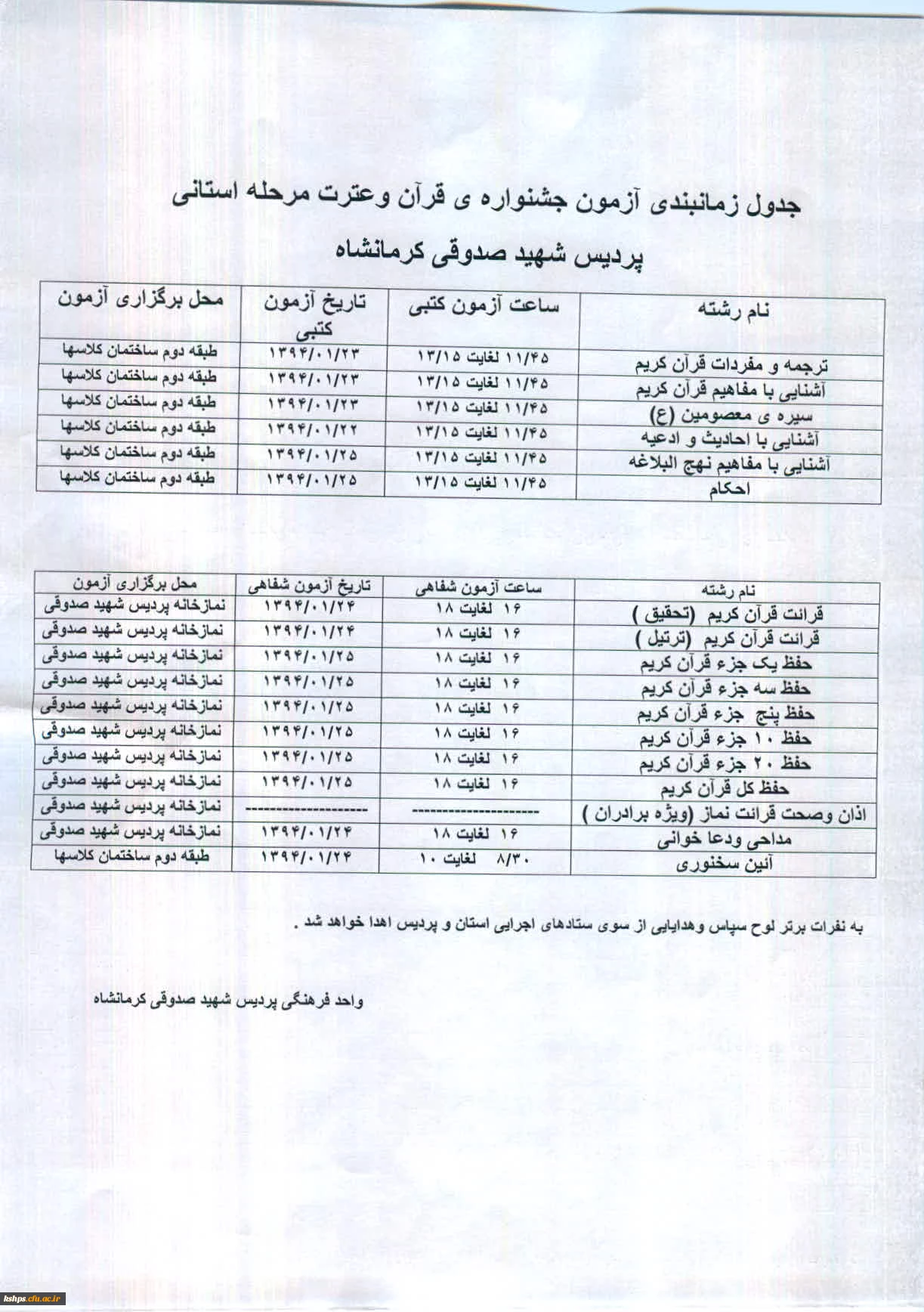 امتیاز دهید : اصلاحیه جدول زمانبندی آزمون جشنواره ی قرآن وعترت مرحله استانی 2 سهشنبه 26 اسفند 1393 ساعت 16:46