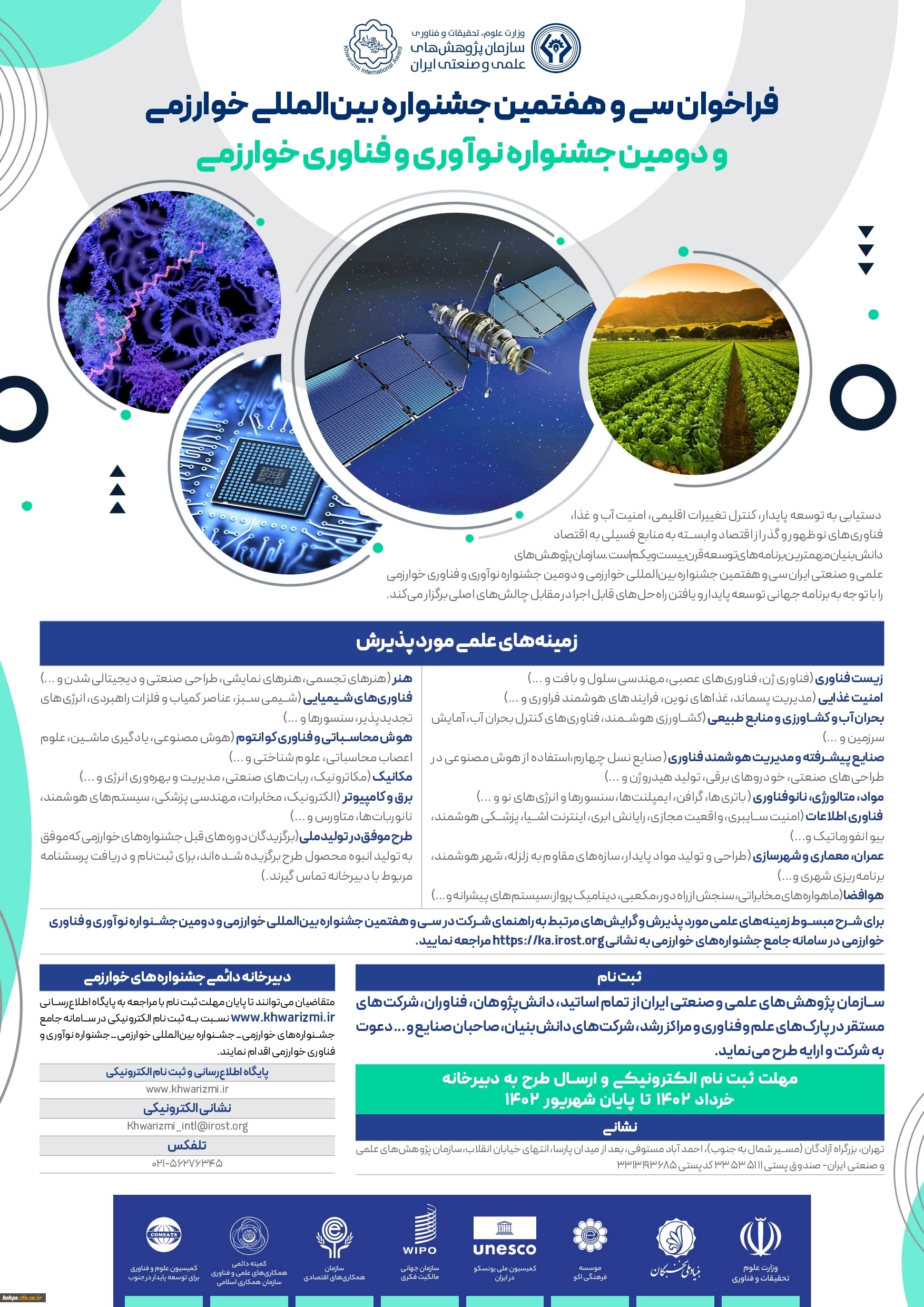 فراخوان سی و هفتمین جشنواره بین المللی خوارزمی و دومین جشنواره نوآوری و فناوری خوارزمی 2