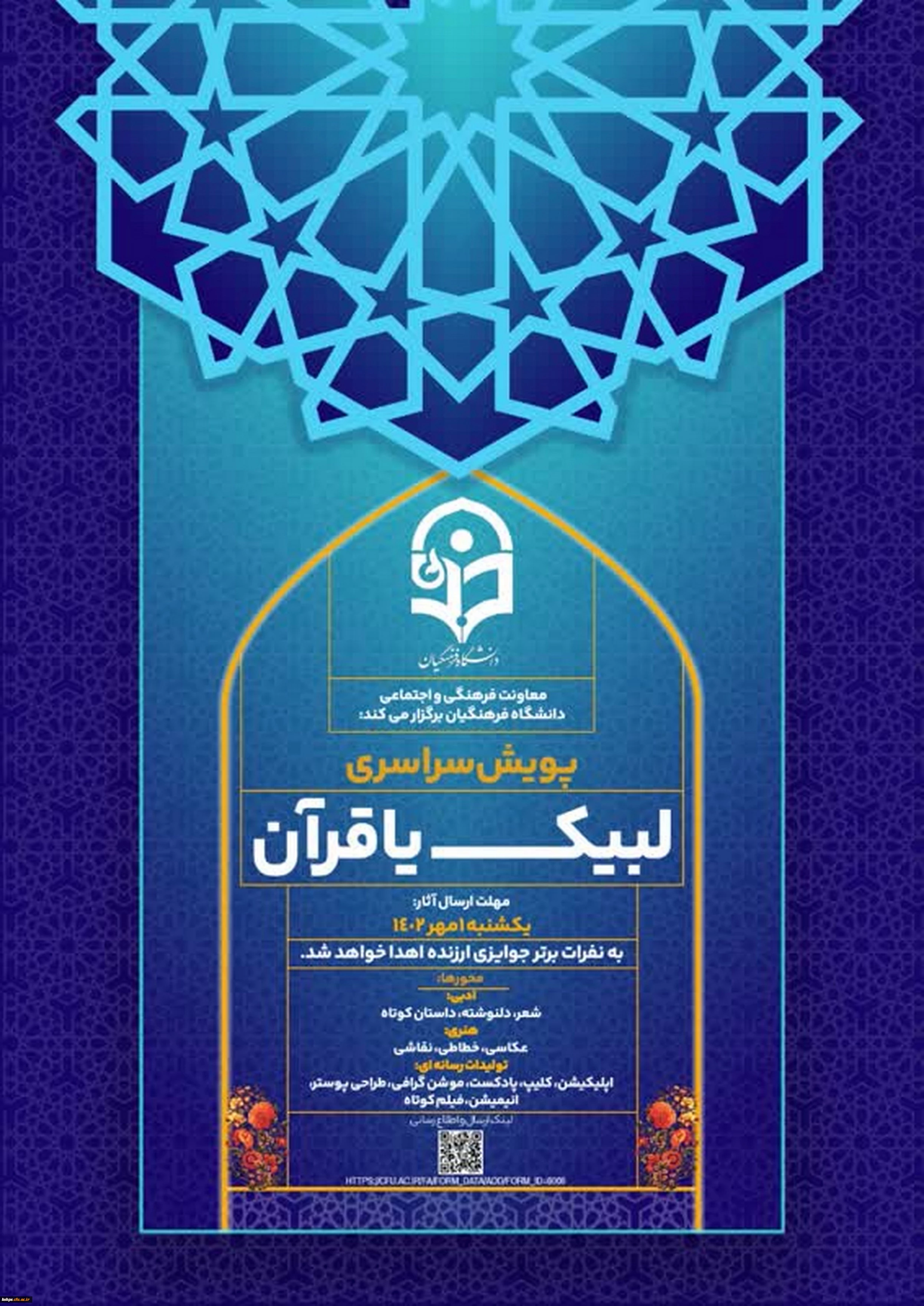 معاونت فرهنگی و اجتماعی دانشگاه فرهنگیان پویش سراسری لیبک یا قرآن را برگزار می کند.
