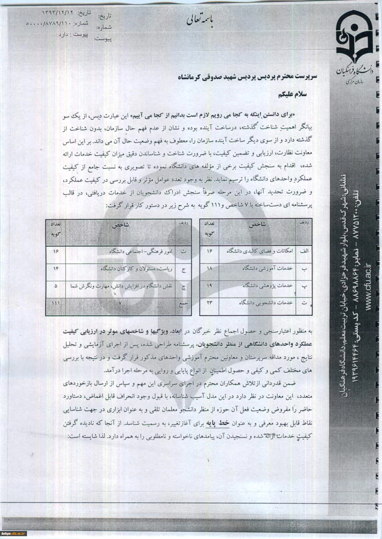 امتیاز دهید : گزارش نتایج نظر سنجی کیفیت عملکرد پردیس شهید صدوقی کرمانشاه 2 شنبه 19 اردیبهشت 1394 ساعت 11:55