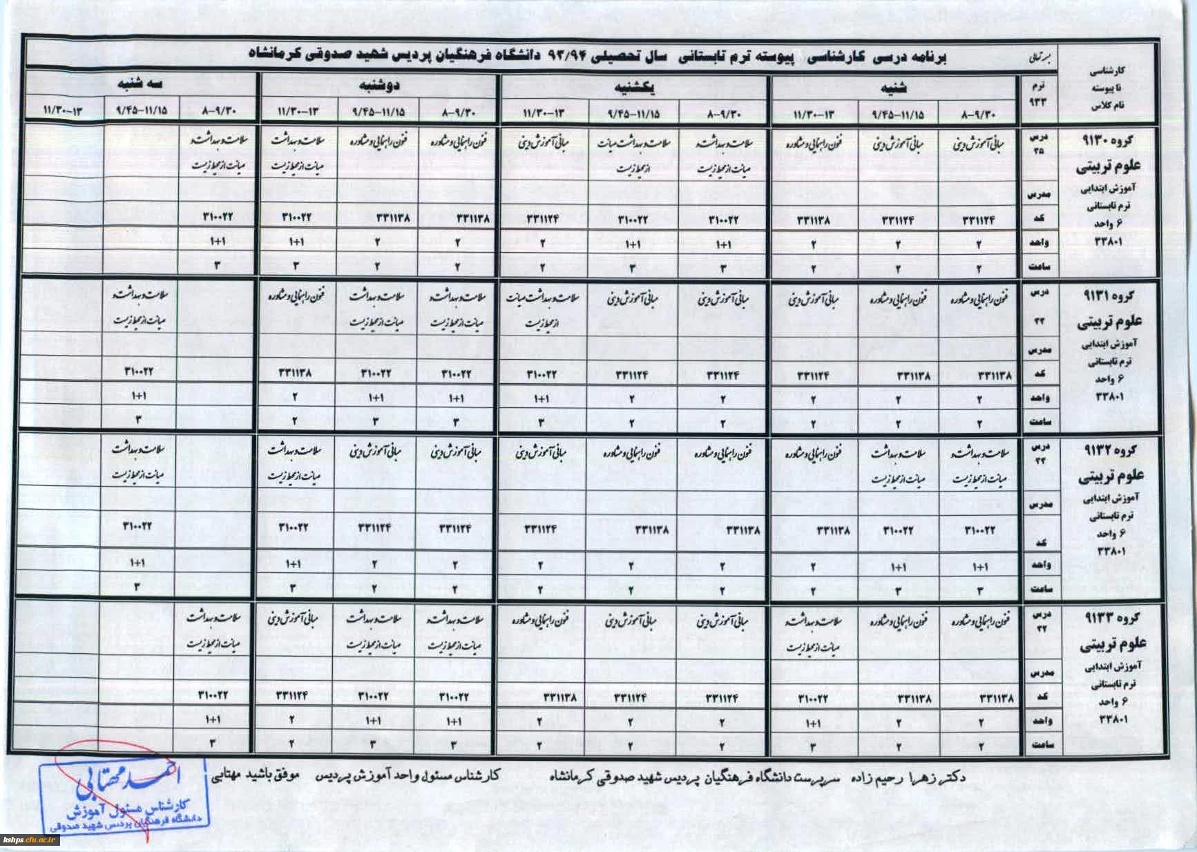 قابل توجه دانشجویان ترم تابستانی برنامه درسی دانشجویان کارشناسی پیوسته وناپیوسته ترم تابستانی 2