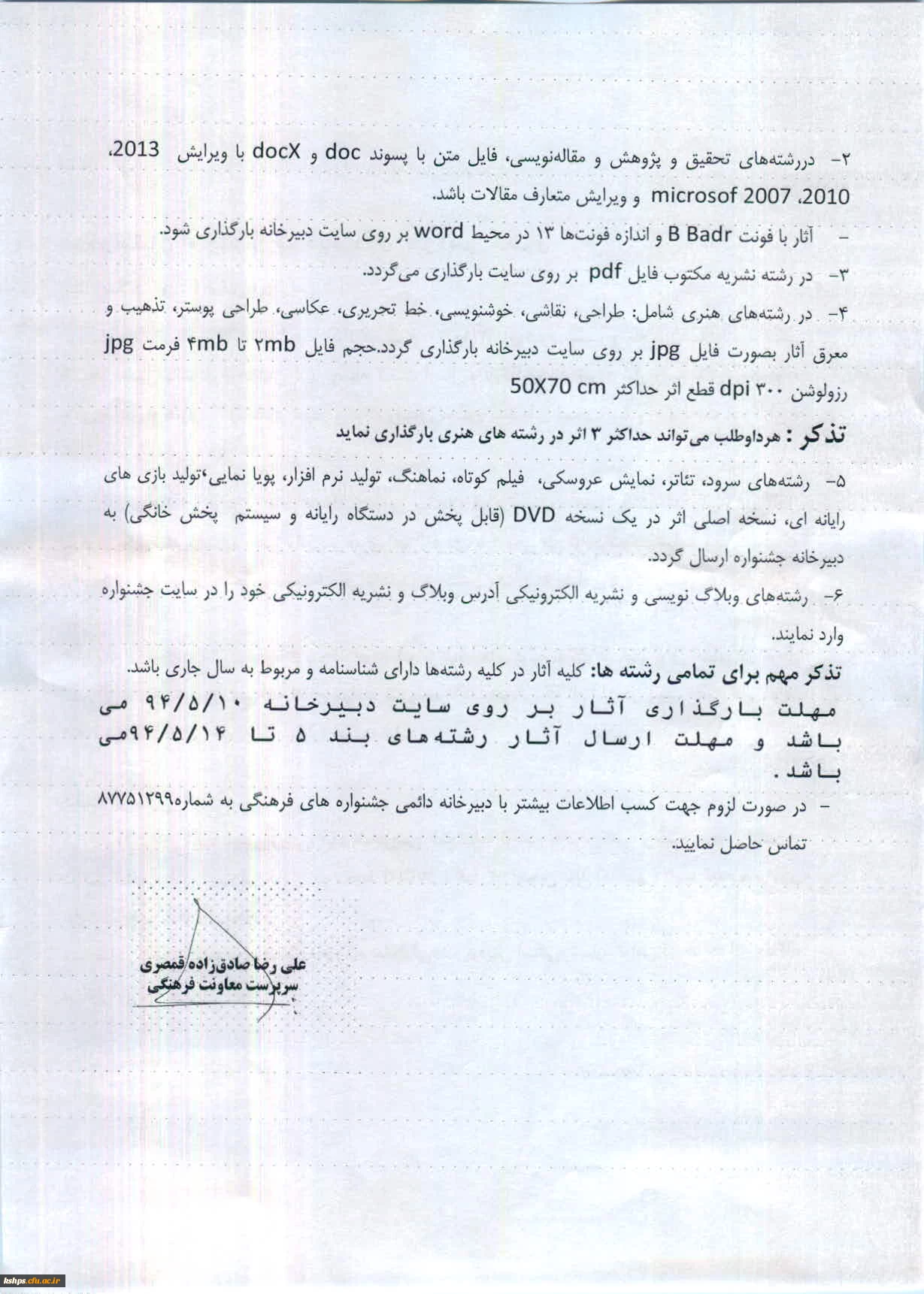 امتیاز دهید : قابل توجه نفرات اول بیست و پنجمین جشنواره فرهنگی علمی ، ادبی و هنری مرحله استانی 3 دوشنبه 5 مرداد 1394 ساعت 10:48