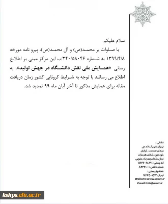 قابل توجه اعضای هیات علمی، غیر هیات علمی و دانشجویان شیوه نامه برگزاری نهمین جشنواره ملی پژوهش در سال 1399 به همراه فرم های انتخاب پژوهشگران در سطوح مختلف